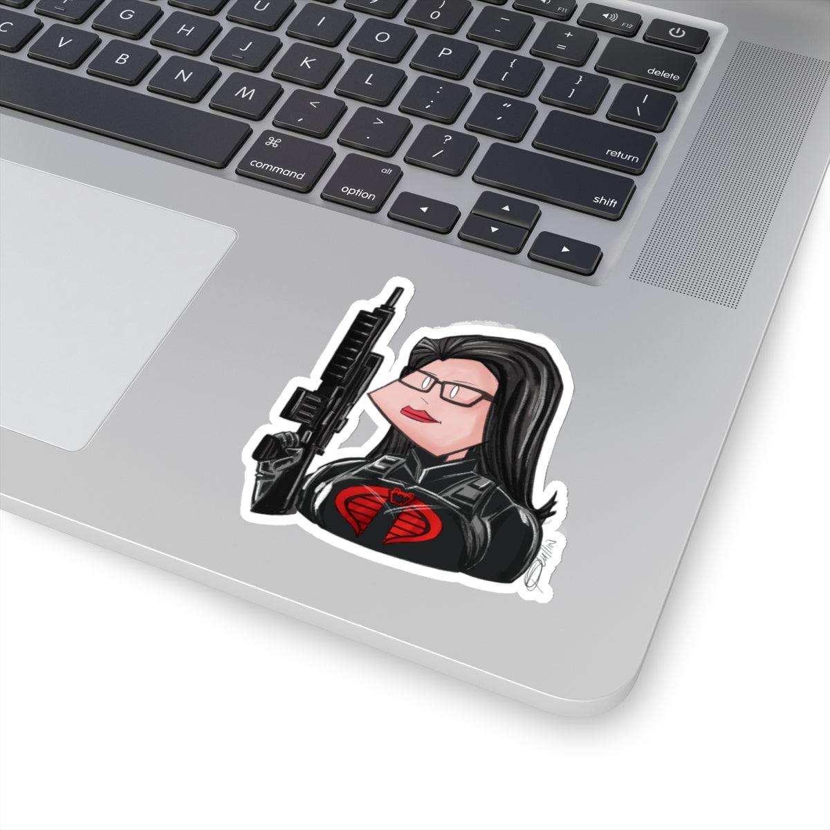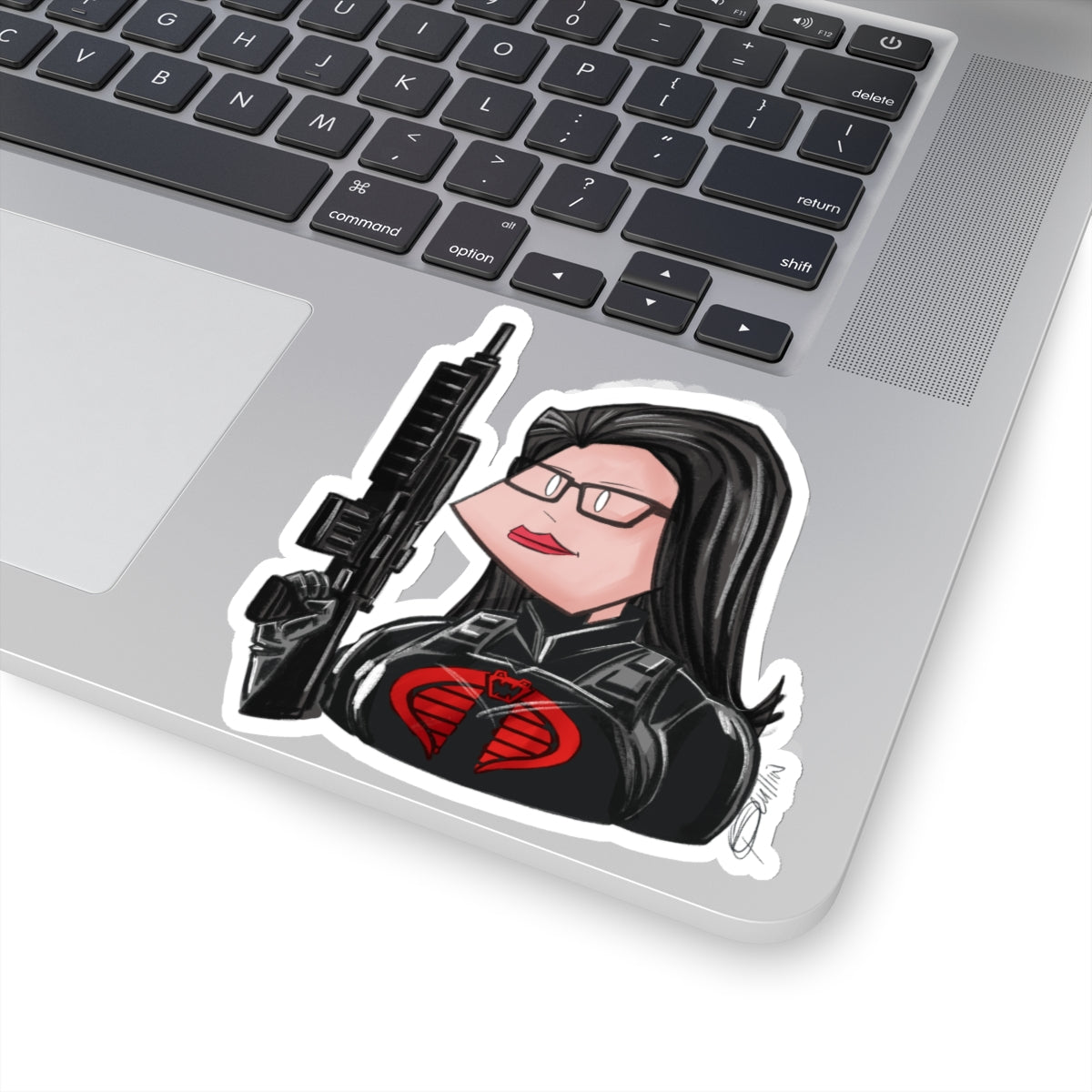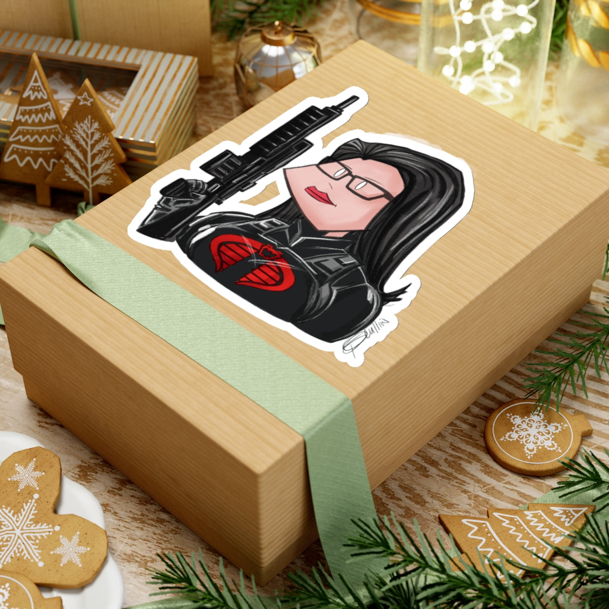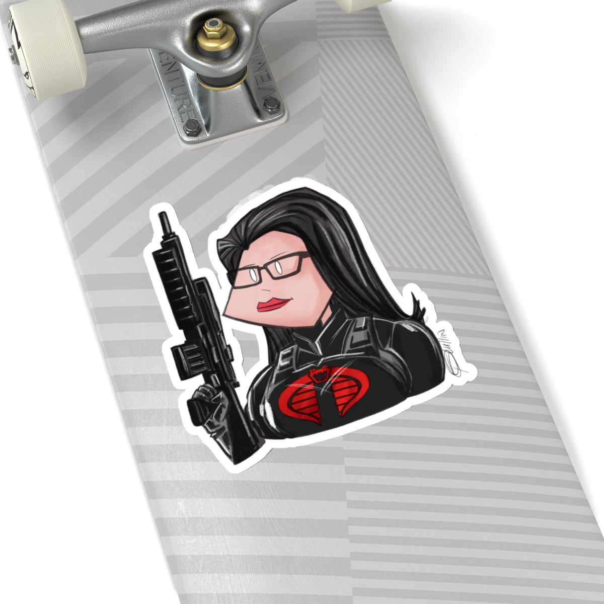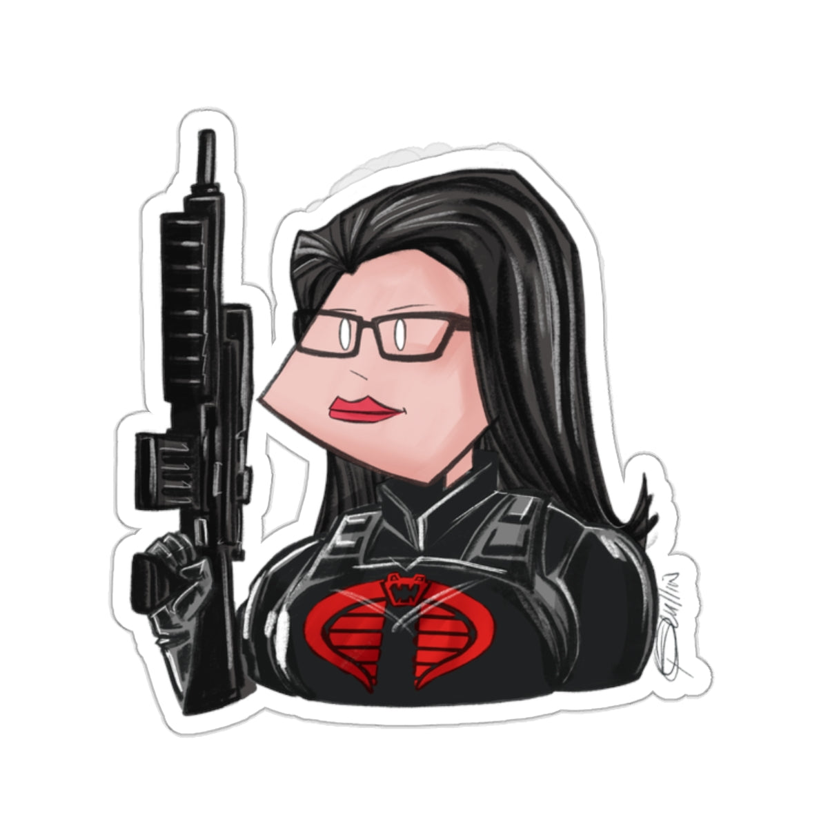 Unleash the power and elegance of the infamous Baroness from G.I. Joe with this striking kiss-cut sticker! Featuring the notorious Cobra operative in her signature black suit, sleek glasses, and commanding presence, this high-quality sticker embodies the Baroness' cunning intelligence and formidable strength. Perfect for G.I. Joe fans and collectors of iconic villains, this durable, scratch-resistant vinyl sticker is ideal for adding a touch of villainous style to your laptop, water bottle, or any flat surface. Built to last with a glossy finish, this sticker is a must-have for anyone who admires the Baroness’ bold and calculating character.
