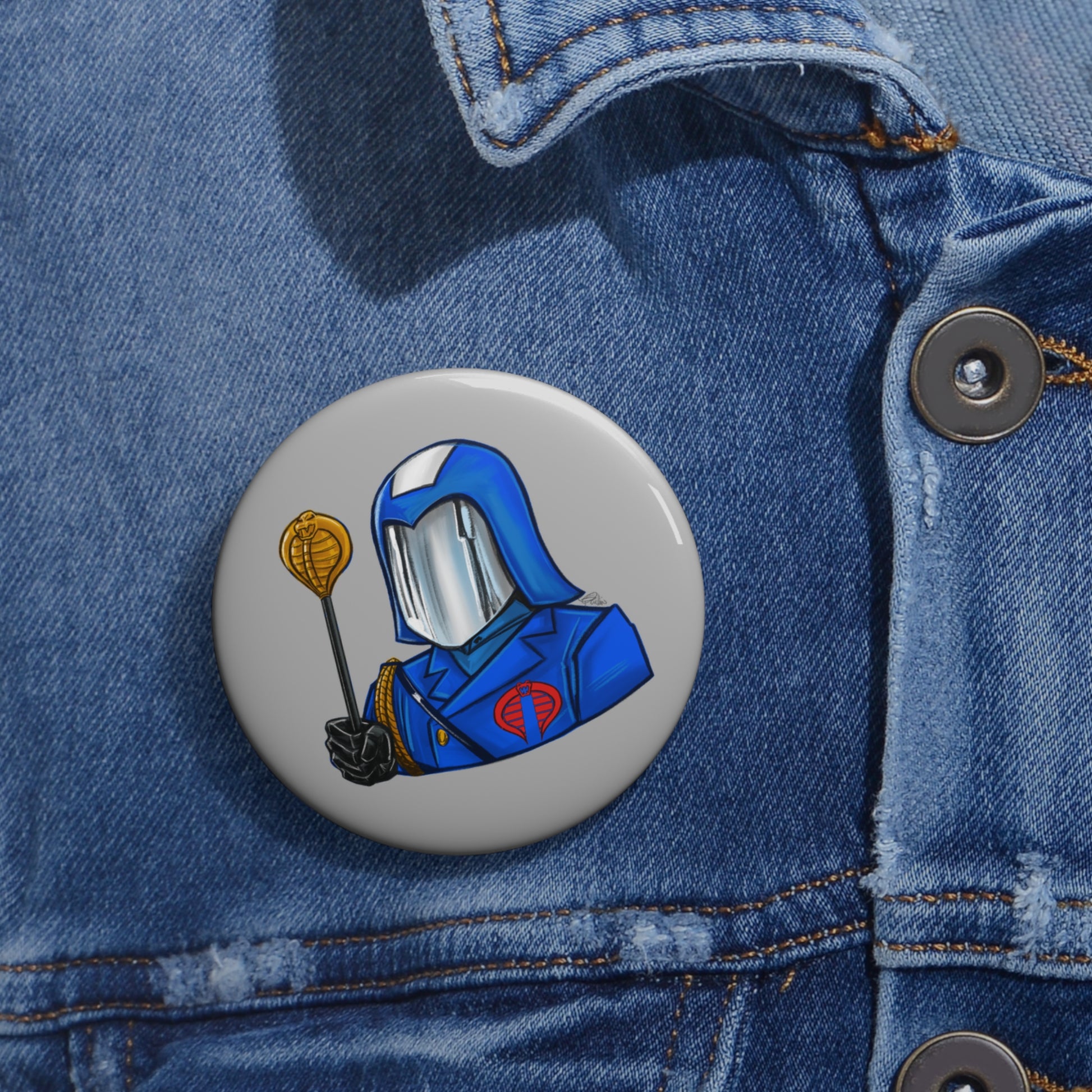 Custom Cobra Commander Pin Button - 1.25" Collectible Badge. Show off your ultimate villainous style with these Custom Cobra Commander Pin Buttons! Perfect for fans of the iconic character, these buttons bring a bold and commanding touch to your favorite jacket, bag, or accessories. Whether you're a loyal follower of Cobra or just looking to add a touch of power to your outfit, these buttons are a must-have. They also make fantastic gifts for birthdays, Halloween, or themed parties, allowing you to flaunt your love for Cobra Commander in a fun and creative way. Command attention and spark conversations with designs that truly stand out!