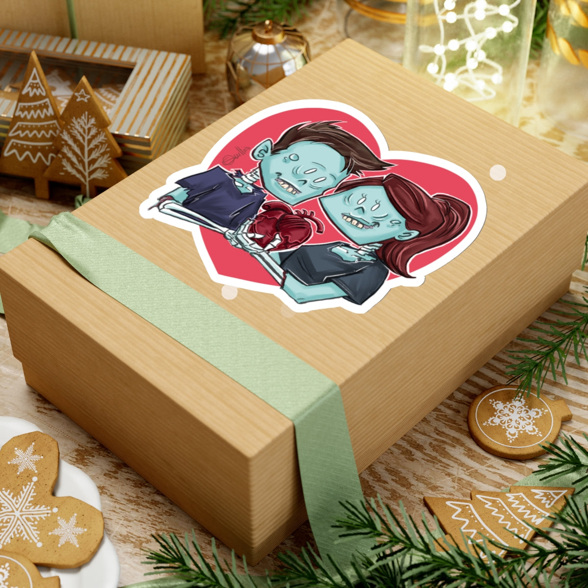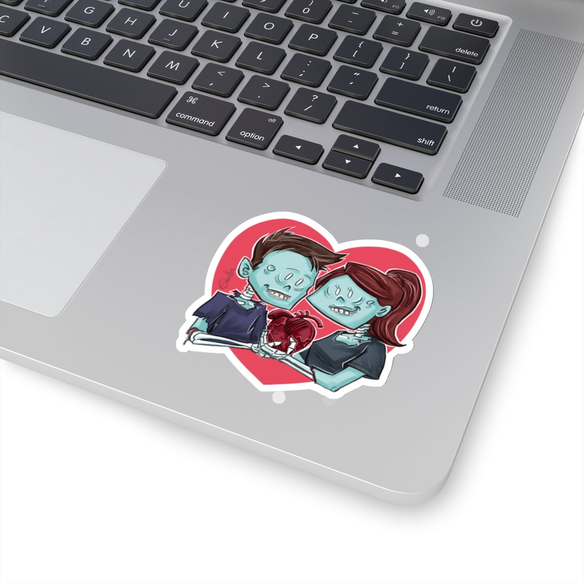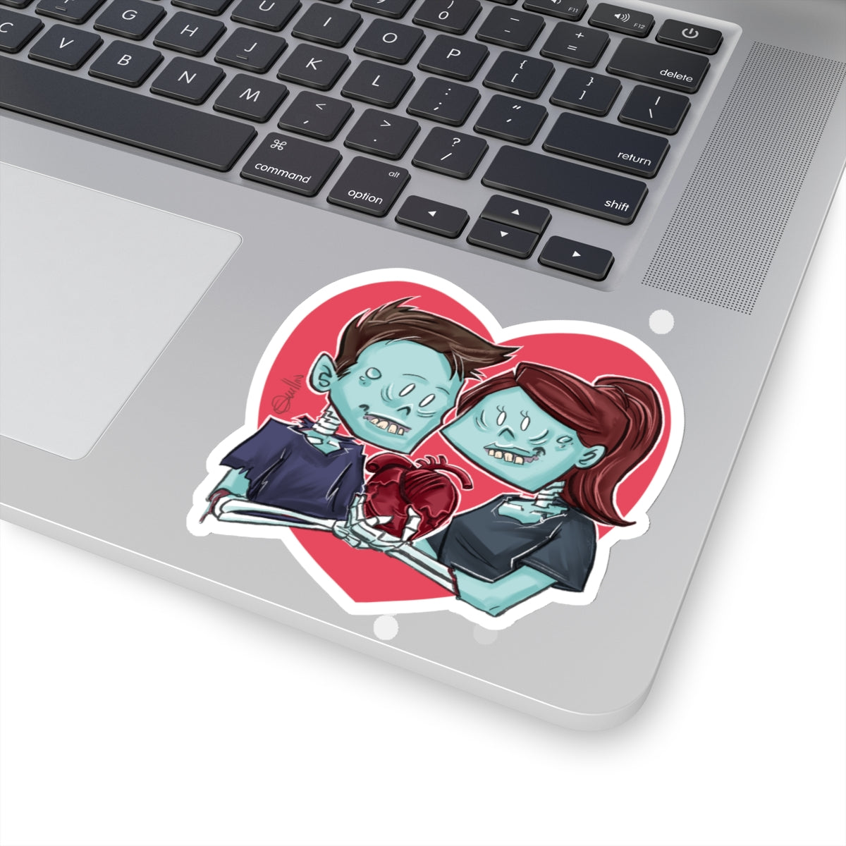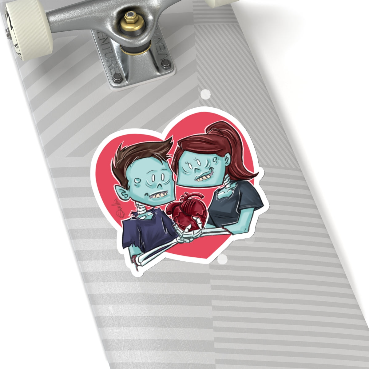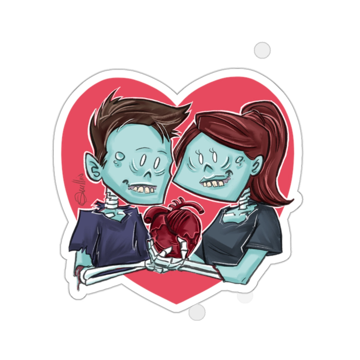 Tags: #CuteZombieCouple #PatrickScullinArt #ZombieStickers #QuirkyDecor #VinylStickers #ArtStickers #HalloweenDecor #EcoFriendly #UniqueGifts #UndeadLove