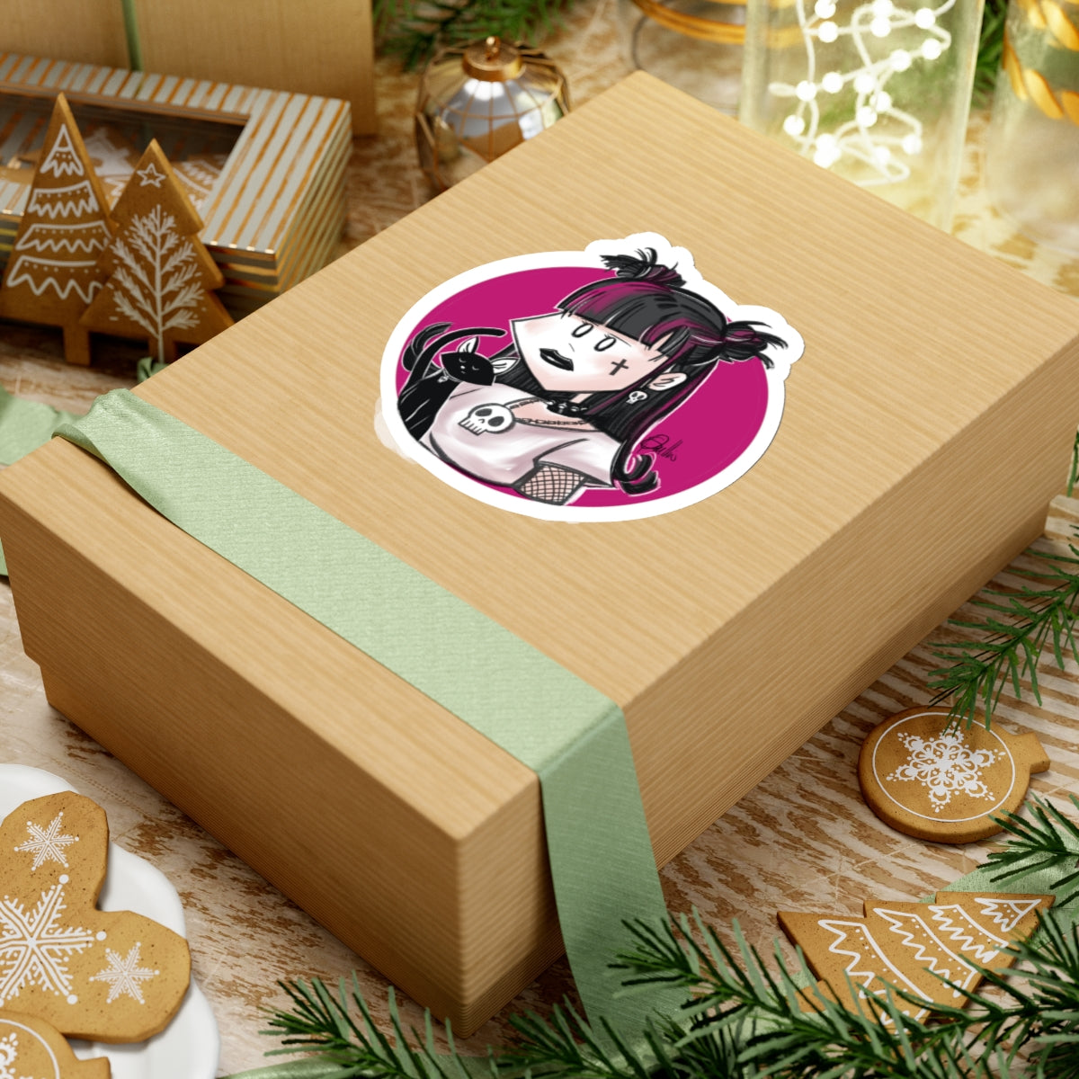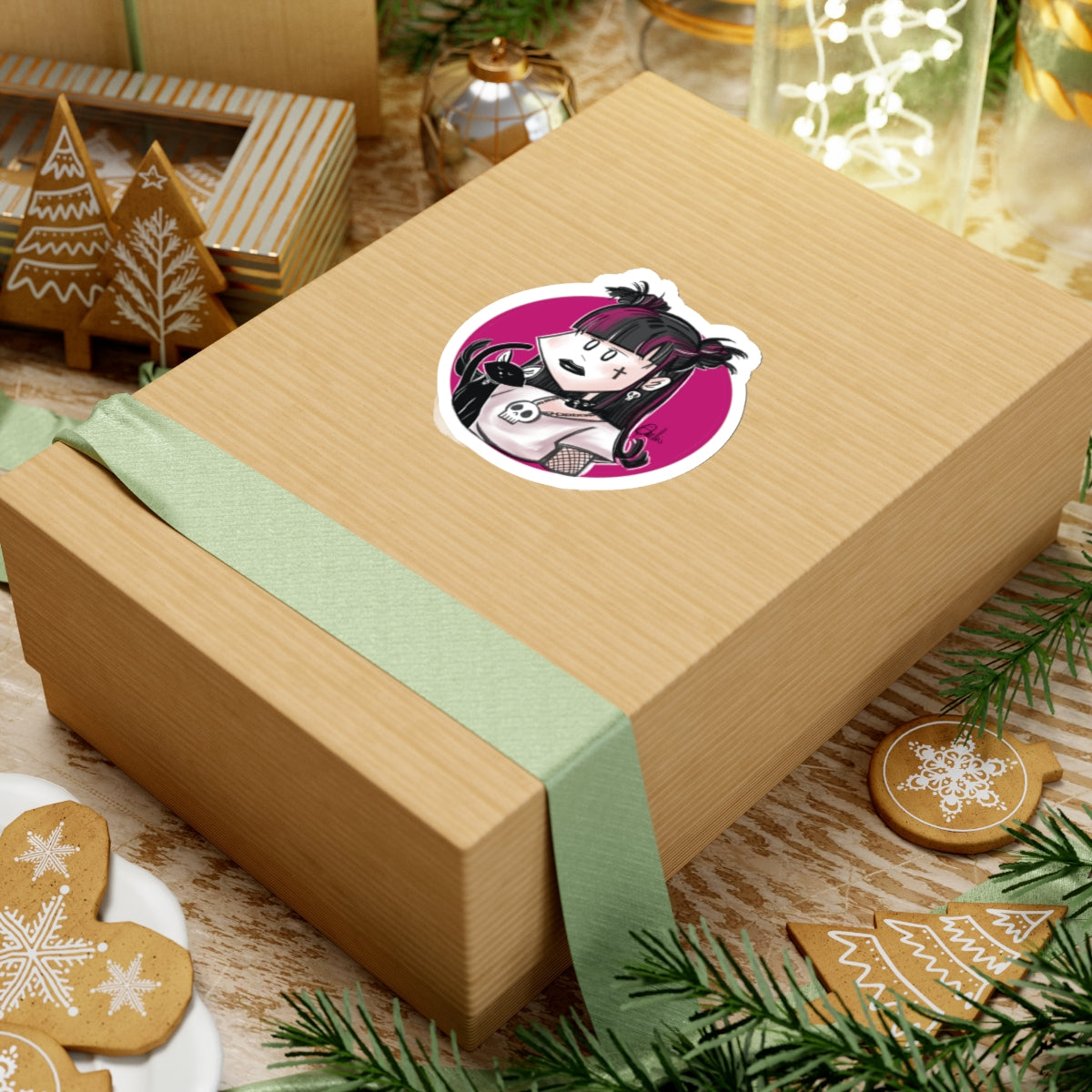 Tags: #CuteGothGirl #PatrickScullinArt #GothStickers #AlternativeArt #VinylStickers #GothicDecor #HalloweenArt #EcoFriendly #UniqueGifts #DarkAesthetic