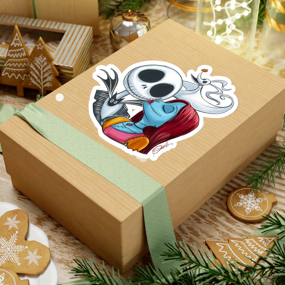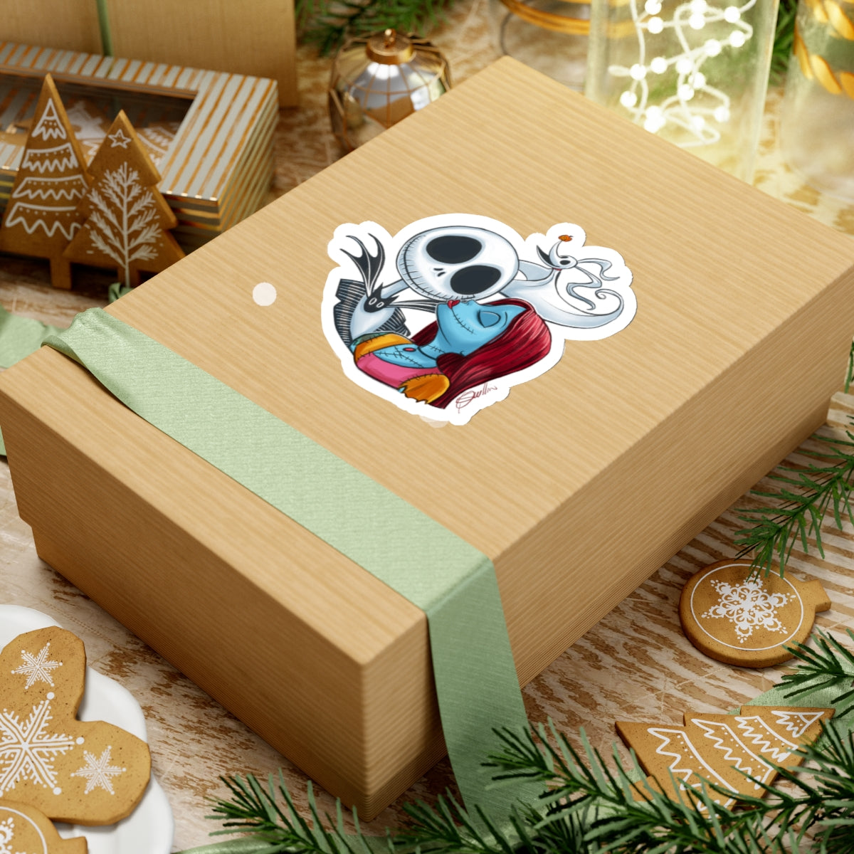 Celebrate the spooky romance of Halloween Town with our Sally & Jack Skellington Kiss-Cut Stickers! Featuring the beloved couple from The Nightmare Before Christmas, these high-quality stickers capture the charm and magic of Jack and Sally’s timeless love story. Perfect for decorating your laptop, journal, or any flat surface, they add a whimsical, gothic touch to any decor. Crafted from durable, scratch-resistant vinyl with a glossy finish, these stickers make a fantastic gift for Nightmare Before Christmas fans, Halloween lovers, or anyone enchanted by this classic duo.